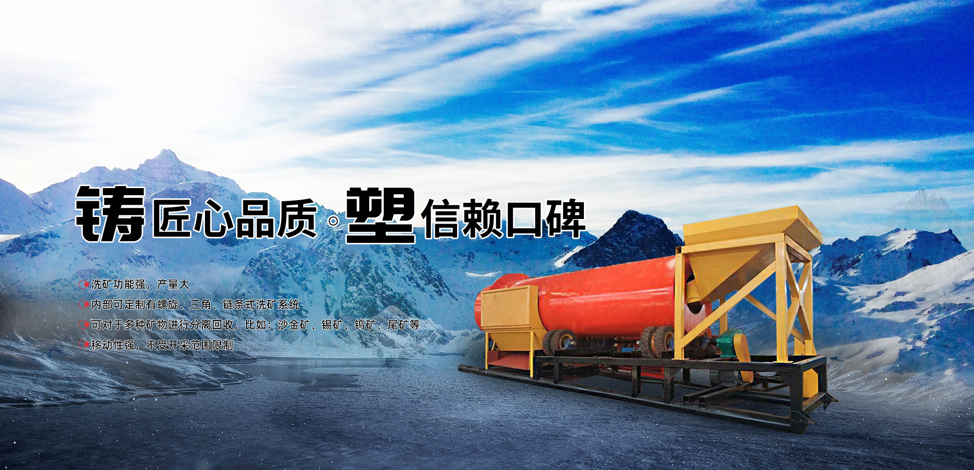 主打產(chǎn)品 根據(jù)礦料定制:選礦設(shè)備 沙金礦開采設(shè)備 尾礦回收設(shè)備 采金船 離心機(jī)等產(chǎn)品